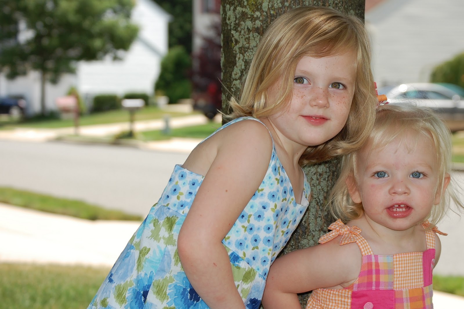 I should not have stayed up so late reading last night! Mckenzie was restless all night and Abby came into my room around 5 to let me know the sun was coming up. Thanks! I got her to stay in bed with me until just before 6, but she was ready to go at the point. At least Mckenzie slept until after 7. We went to Target this morning and Abby told me she would like to live at Target! I guess we go there a little too often if she is thinking about moving in! Got the girls home and Mckenzie down for a nap. After coloring with Abby for an hour, I convinced her she needed a little nap if we were going to play at the park and so we both got in an hour snooze before Mckenzie was done with her nap. It was very refreshing considering I had less than four hours of sleep! We talked to Scott for a little bit and he was doing fine. Tired, but that seems to be the norm when he is traveling. The girls and I went to the park and on the way, got soaked by a sprinkler! Abby thought it was hilarious to ride her bike through the water and I think Mckenzie thought the exact opposite! We came home and ate some dinner. I let the girls stay up a little later so I could get some cleaning done. They were playing together so nicely I thought I better take advantage and get the house cleaned while I could. I love how nice the house feels after I clean it, I just don't like having to do the work. The girls let me take some pics of them this morning. I thought they both looked adorable in there dresses. Apparently so did an old lady at Target. She and her husband were sitting by the entrance and when we came in I overheard her tell her husband the girls were so cute. The she started talking to us and wanted to hold Abby's hand. Poor Abby didn't know what to do, but she finally held out her hand and you could tell it made the lady's day by the big smile on her face.